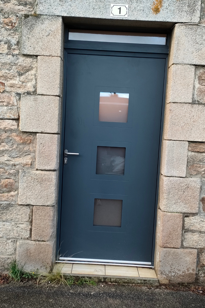 Pour un accueil à la fois esthétique et fonctionnel, il installe des portes d’entrée qui combinent design moderne et qualité artisanale, incluant des modèles avec vitrages élégants.