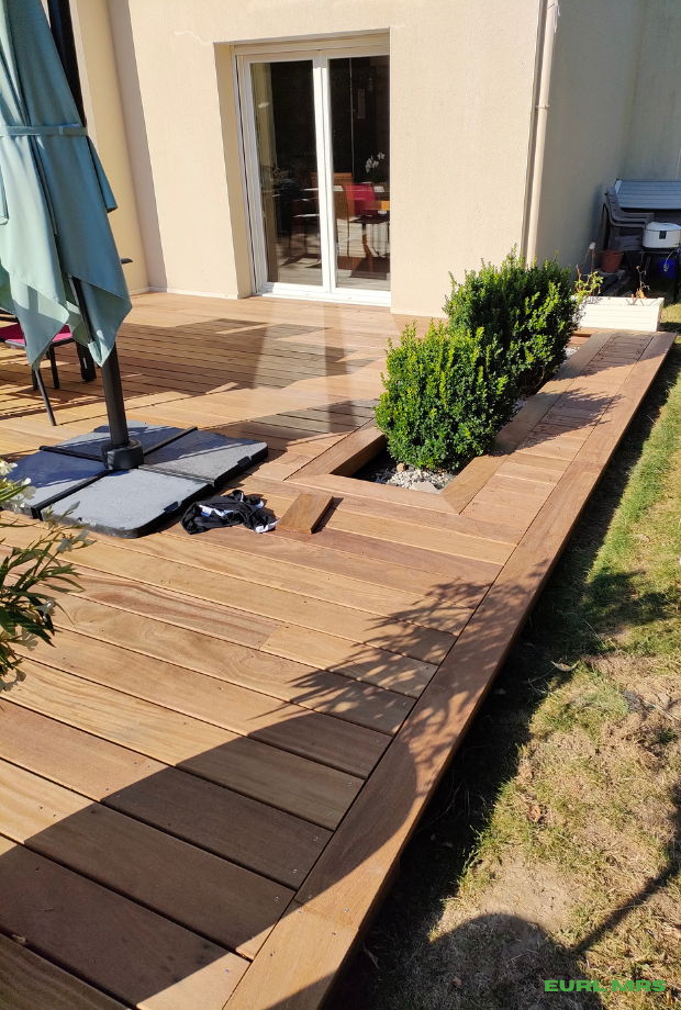 Ce projet met en avant l'utilisation de matériaux de haute qualité pour assurer à la fois durabilité et esthétisme. Les images montrent un avant-après, illustrant la transformation de cet espace. La terrasse est idéale pour se détendre au soleil et profiter des journées estivales, tout en ajoutant une touche élégante à votre espace extérieur.